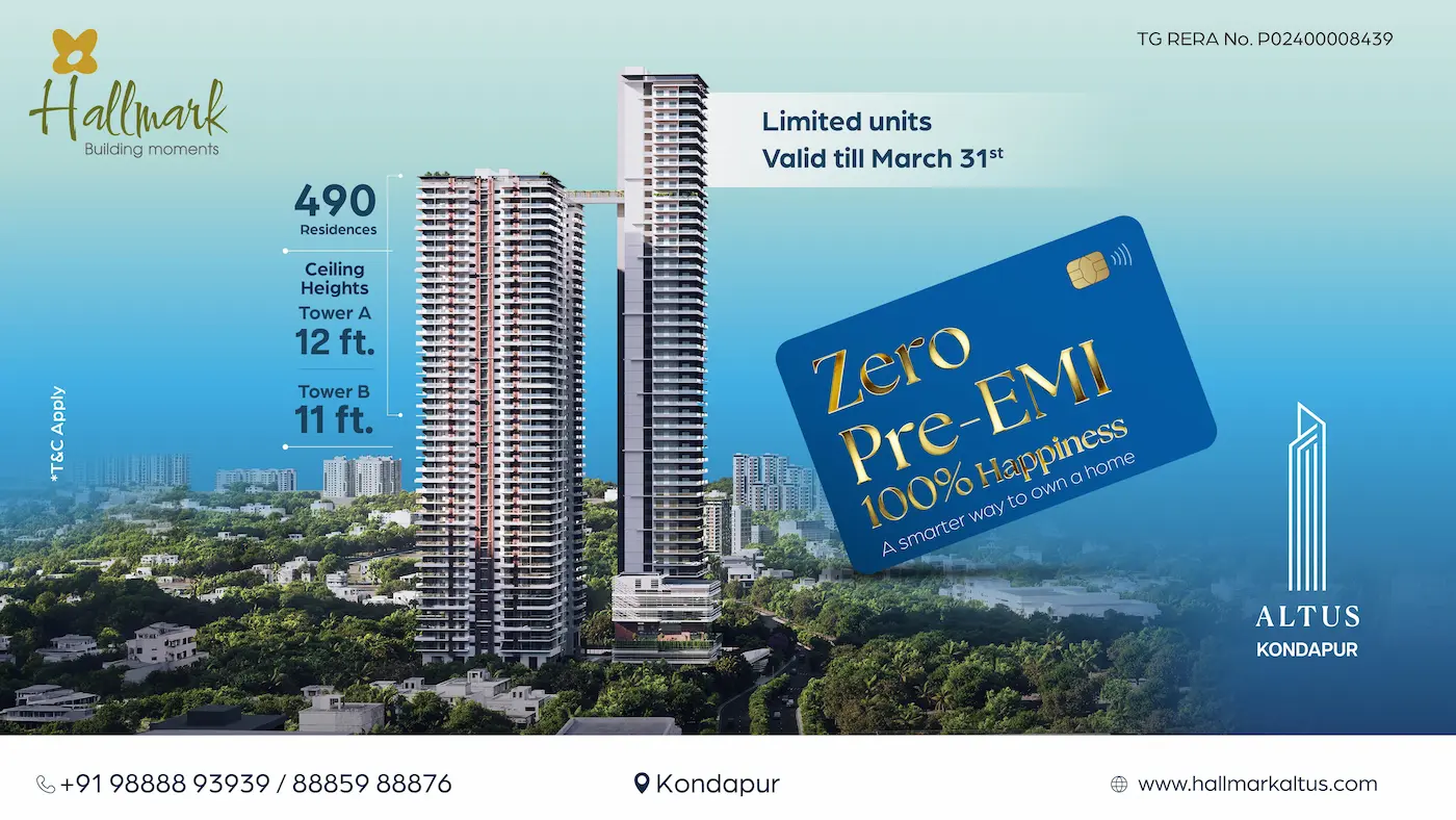 Soaring above the skyline, Altus is not merely the tallest skyscraper in Kondapur; it is a symbol of what becomes possible when vision is shaped by craftsmanship. Gracefully commanding attention in the heart of Hyderabad’s vibrant western corridor, Altus by Hallmark reimagines the city living with an architectural presence that is both powerful and poetic.