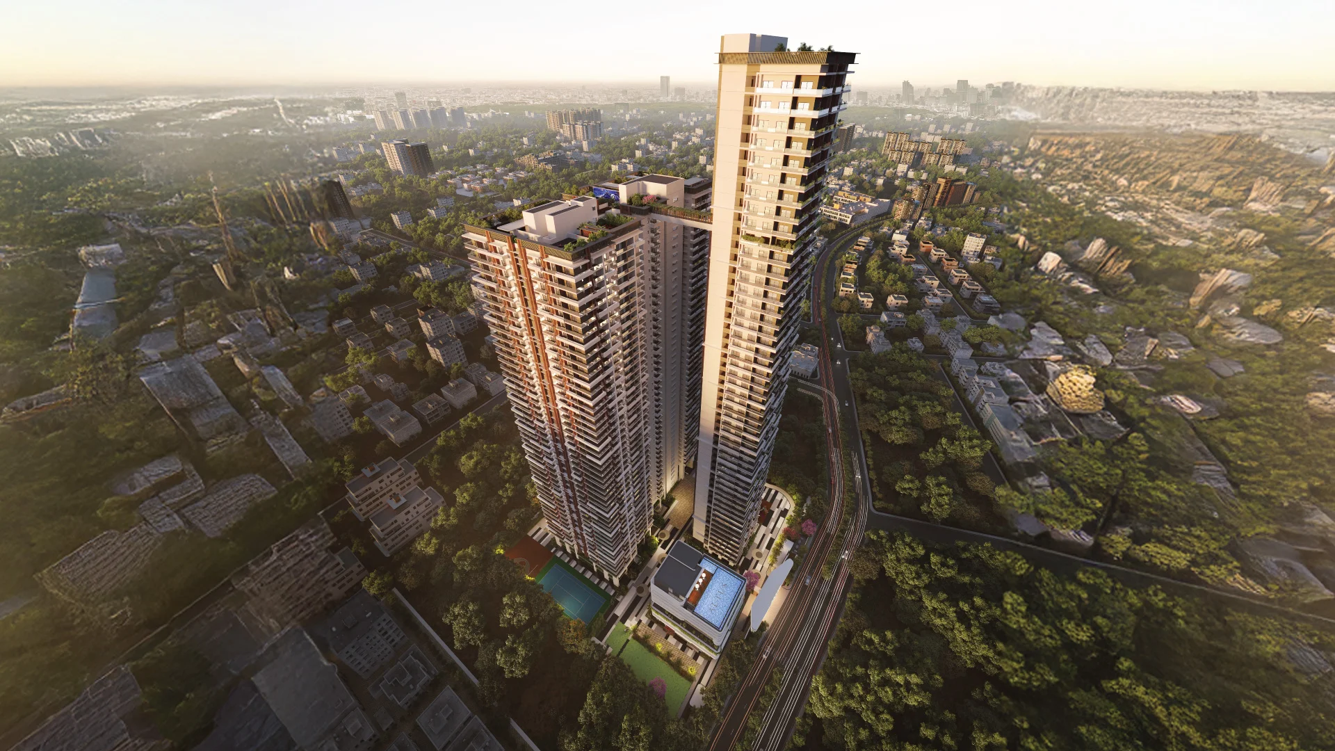 Rooted in Kondapur, a neighborhood where cosmopolitan energy blends effortlessly with everyday convenience, Altus places you at the very center of connectivity and culture. From the business pulse of HITEC City and Gachibowli to the retail vibrance of Sarath City Capital Mall, and from esteemed schools to leading hospitals, every essential is within effortless reach.